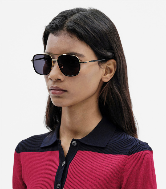 A squared-off double bridge navigator has been reimagined in the form of future classic. All components such as acetate trims precision-milled, titanium rims highly-graded, voluminous temples acetate-shrouded deliver the lavish depth and unique persona to this piece of art, RS10.