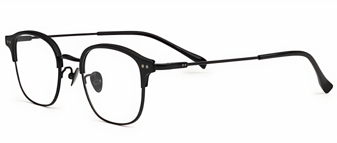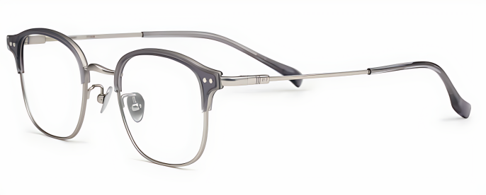 CL18 titanium spectacles that reinterpret the form of archetypal half-rimmed frames are finished with the slim-line acetate over the top of rim parts, demonstrating a sophisticated balance between material selection, volume difference, adding ornaments. Available in round, square and polygon shapes.